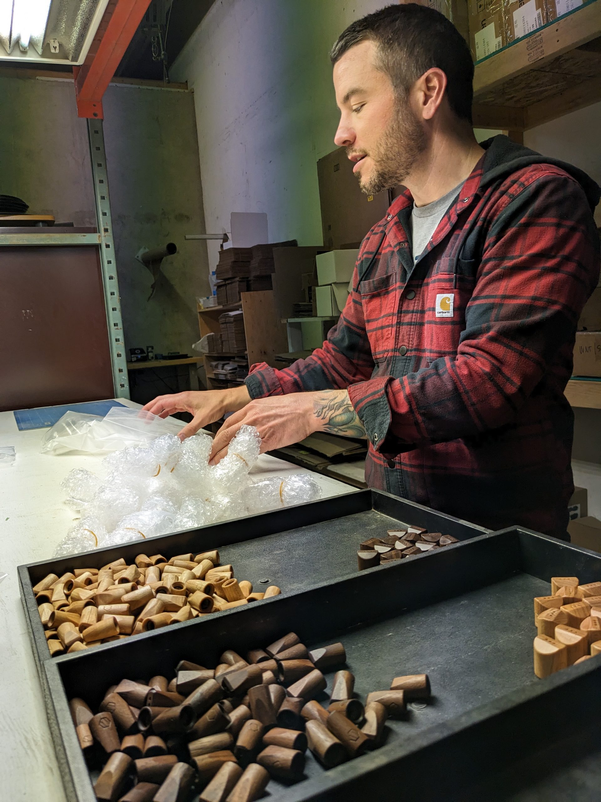While running Elevate, I did it all, including making the products myself. I started out in my garage, where I finished, assembled, packaged, and shipped all products for several years. I also created the CAD and CAM files for the wood and metal pieces and fabricated the pieces myself, using a CNC machine at a local machinist shop. As Elevate grew, so did the shop space. Check out the various shops Elevate has had over the years.
