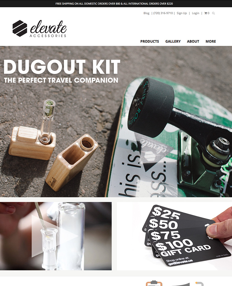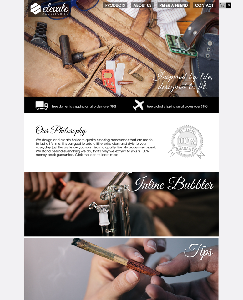 I built three different iterations of Elevate’s website using two different platforms. The first two iterations were on a platform called the Maker System and the third was on Big Commerce. For the first and second iterations, I designed and built the front end myself with no templates. I photographed all of Elevate’s products myself and created videos to showcase the products’ features and functions. My efforts proved to be worth it: The version of the website (shown below) boasted an average 8% conversion rate.
