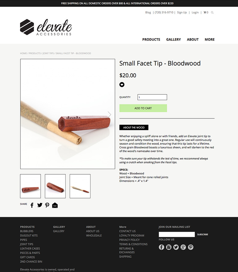 From Elevate’s inception, I aimed for a luxury vibe. I achieved this objective by manufacturing the products in-house using exotic woods, precious metals, and U.S.-made glass parts. However, the products came with high costs and prevented me from offering our products wholesale, so I decided to launch Elevate as a D2C brand.